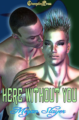 The cover faery aka Renee George stopped by and left me with a fantastic cover for Here Without You . This is the fourth of the Glow books and the first without an elemental as a protagonist. The fun part about the cover is Slash totally evokes the over-the-top punkiness of the band. Renee captured what I wanted so well.