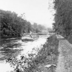 The boat consisted mostly of a cabin and was pulled through the water by horses walking on a parallel towpath.