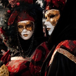 For some wonderful examples of masks – and if you feel like indulging yourself in an authentic Venetian mask for your next masquerade event – take a look at these website: Mask Italia, Venetian Mask Shop, 1001 Venetian Masks and Dream of Italy.