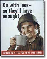 Back in the 1940‘s, as a nation jumped into World War II after the Pearl Harbor attack, a system of rationing was implemented. It limited the amount of certain goods a person could purchase. Supplies such as gasoline, butter, sugar and canned milk were rationed and diverted to the war effort. War also disrupted trade, limiting the availability of some goods. For example, the Japanese Imperial Army controlled the Dutch East Indies (today’s Indonesia) from March 1942 to September 1945, creating a shortage of rubber. It affected American production. My 81-year-old mom remembers those days. Historians (Tom Brokaw especially) consider this time of “giving up valued things” as our country’s “Greatest Generation.”