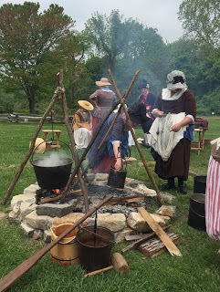 One final note in light of some of our recent discussions here at TNHG: Every woman participating in the event was wearing period-correct clothing, including boned stays (18thc corsets.) I'm happy to report that despite the many heavy iron kettles hoisted over fires and water-filled oak buckets lifted, no one fainted.