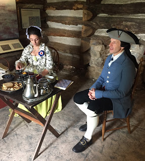 And in one of the cabins, General Nathanael Greene's wife Catharine Littlefield Greene was charming James Lovell, the visiting Congressman from Massachusetts, with tea, tarts, and 18thc jests from a popular magazine of the time.