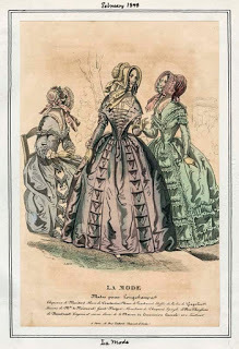 Magazine of the Beau Monde image: Walking & Promenade Dresses May 1843 courtesy Google Books. Fashion plate description . La Mode Image , courtesy Los Angeles Public Library, Casey Fashion Plates collection.