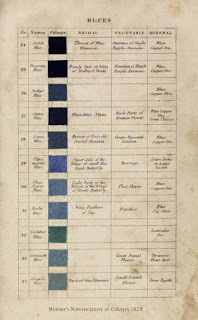 What I didn’t know was that a book with a system for naming colors was created during the Regency. Werner’s Nomenclature of Colours was first published in 1814, with a second edition in 1821. It apparently became a color bible for artists, explorers, naturalists, and others. A new edition, which came out in the U.S. in February of this year, cites Charles Darwin as one of its devotees.