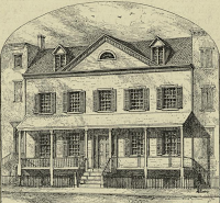 Following the conventions of the day, their seconds turned their backs to keep from being witnesses, and as a result, no one is entirely certain of what happened when the two pistols fired. Most believe that Hamilton intentionally fired into the air, satisfying the demands of honor, but keeping to his beliefs as a Christian by not taking another man's life. Burr, however, shot with purpose, severely wounding Hamilton. Partially paralyzed, bleeding profusely, and drifting in and out of consciousness, Hamilton was taken back to Manhattan to the house of Nicholas Bayard, upper right, where he died the following afternoon, surrounded by his grief-stricken family and friends. In addition to his widow Elizabeth Schuyler Hamilton, he left behind seven children, the youngest still an infant. Less than three years earlier, the Hamiltons' eldest son, Philip, aged 19, had also been killed in a duel defending his father's honor - possibly with the same pistols.