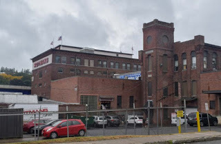 Like most cities, my hometown has lost large chunks of its architectural heritage, for a variety of reasons.* Recently, I was surprised and heartened to discover that one large mill complex has managed to survive—not every single building, but most of them—thanks to local business people as well as our dedicated preservationists. Not long ago, under the auspices of Preservation Worcester , Breanna Barney gave a group of nerdy Worcester history people a talk and tour of the Whittall Mills in South Worcester.