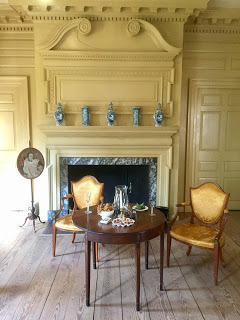 Now operated under the auspices of the New York State Office of Parks, Recreation and Historic Preservation (NYS OPRHP), the Schuyler Mansion has celebrated its centennial as a historic site this year in grand style with projects that have included restoring the steps leading to the house's front door; recreating the "Ruins of Rome" scenic wallpaper in the halls (see my earlier blog post here ); restoring Schuyler family silver and china for display; replacing the roof and repairing exterior woodwork; and restoring and reupholstering an elegant set of 1790s chairs and sofa that had belonged to the family.