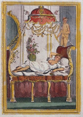 Above: The Celestial Bed, with the Rosy Goddess of Health reposing thereon, unknown artist, English School, 1782, private collection.