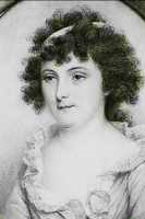 Right: Photograph detail of a miniature portrait of Magarita Schuyler Van Rensselaer by James Peale, c1796.