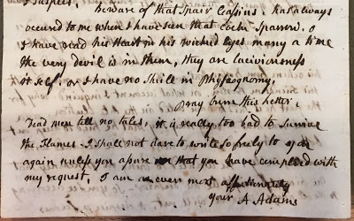 Obviously, John Adams didn't obey Abigail's request. Read as transcribed here, her words are indeed "bad," but to see them as she wrote them in the original letters showed exactly how angry she was.