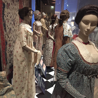 This elegant - and adaptable - gown is on display in the Printed Fashions: Textiles for Clothing and Home exhibition (currently at the DeWitt Wallace Decorative Arts Museum of Colonial Williamsburg through 2018; see other articles from the exhibition I've mentioned here , here , and here ). The photo, right, shows the dress as it appears in the exhibition, and gives you an idea of just how much other printed gorgeousness is on parade in this amazing exhibition.