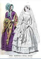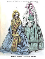 I wish I had been able to find, in the limited time I had, better quality fashion prints for the 1840s. However, you can see something closer to a portrait painting here and here , both of which illustrate the radical change in hair styles as well.