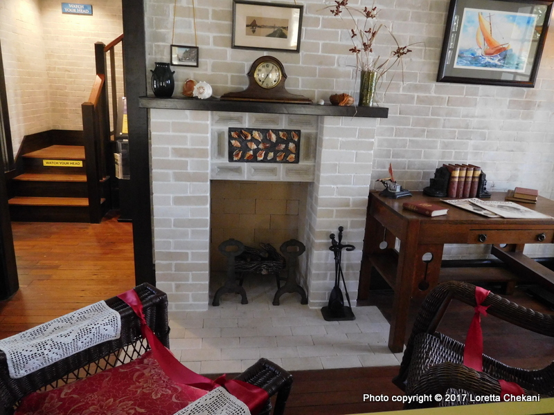 As well as going under the Mound House of Estero Island , I entered the house itself , which has been lovingly restored to one of its earlier incarnations. Indoors included an immense bathroom (from a later period), which holds some fascinating exhibits for both children and adults.