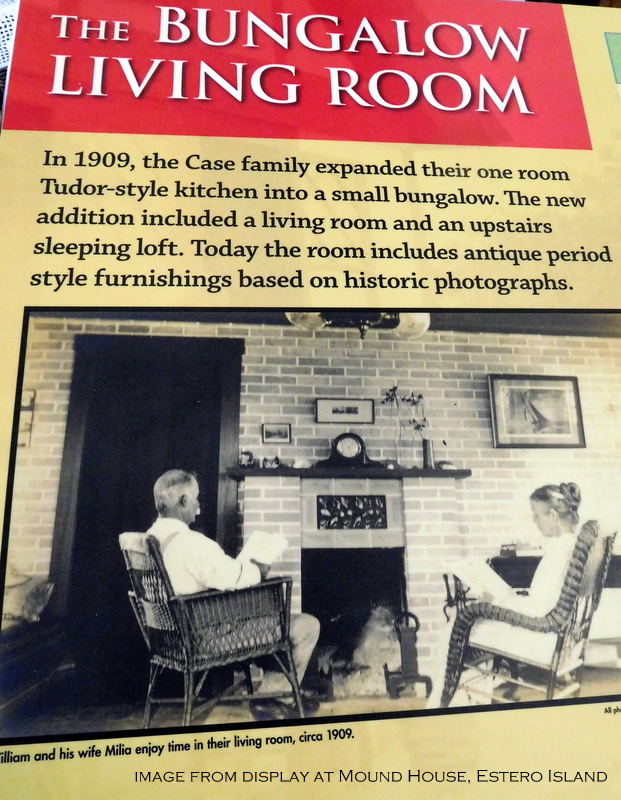My subject, in Florida, is by far the younger structure, dating to the early 1900s. Surrounded by a beautiful garden, the Mound House overlooks Estero Bay.