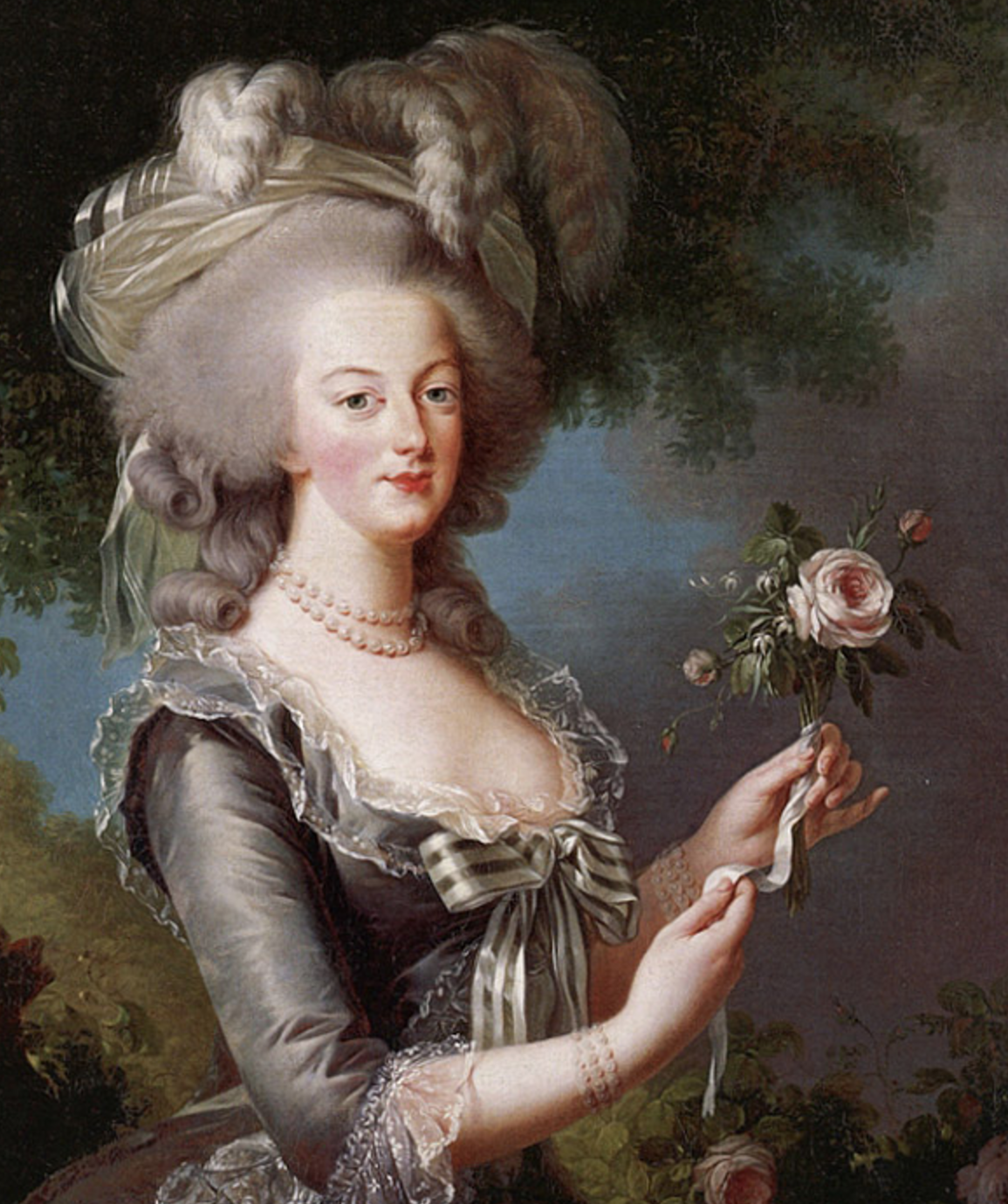 Above left: Marie Antoinette with a Rose by Élisabeth Vigée Le Brun, 1783, Metropolitan Museum of Art.
