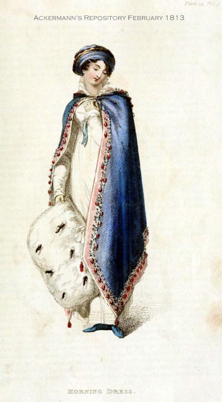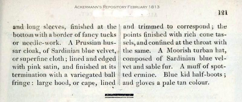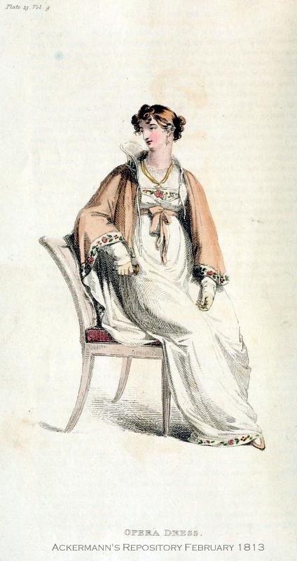 We’ve moved into the 1810s, a decade that develops an interesting fashion twist after the Battle of Waterloo in 1815. Up until then, the dresses carry on the vertical style, with a variety of interpretations of “classical” dress, as do these two items. But after Waterloo, things start getting more elaborate and less body-clinging, as we gradually move toward the wild and crazy part of the early 19th century, where most of my stories are set.
