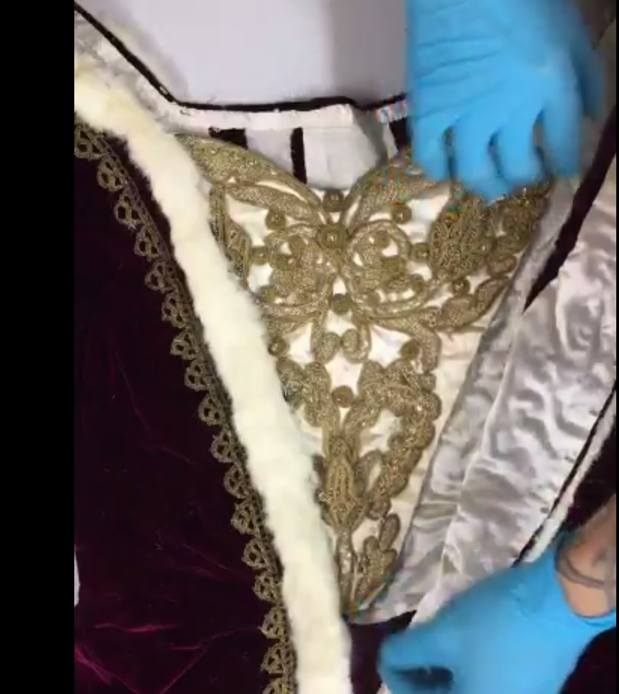 • Exploring the interior of a c1805 silk satin dress .