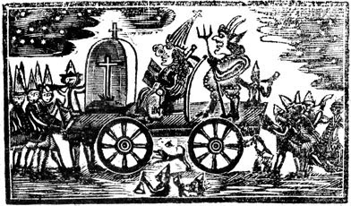 Above: Detail from Extraordinary verses on Pope-night, or, A commemoration of the Fifth of November, giving a history of the attempt, made by the papishes, to blow up king and Parliament, printed in Boston, 1768. Collection, Library of Congress