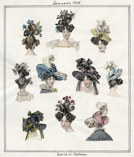 In my book Lord of Scoundrels , set in 1828, the hero finds the heroine's clothing and hair amusing. I know that when our readers see the fashion plates for the 1820s and 1830s, many feel the same way. But I love Romantic Era fashion, especially the extravagant sleeves and nutty hairstyles. There's an exuberance I find irresistible. The hair, especially, climbing ever upwards, charms me. But one does wonder how this sort of architectural arrangement was managed in the days before hair spray and gels.