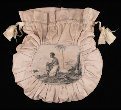 "Established on April 8, 1825, the Birmingham, England, Female Society for the Relief of British Negro Slaves, produced literature, printed albums, purses and workbags [including this one] for sale to help raise awareness of the cruelty to enslaved Africans and to provide money for their relief. These women, many members of the Society of Friends or Quakers, began one of the earliest Free Labor Movements specifically against the purchase of slave-made West Indian sugar. Identical objects and literature crossed the Atlantic and helped to fuel the American abolitionist movement."