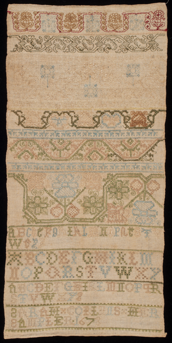 Sampler, worked by Sarah Collins, 1673. Winterthur Museum. Photographs copyright Winterthur Museum.