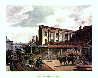 The following excerpt is from the section on markets in and about London. There were quite a few (more than I was aware of). Mr. Ryland rates Leadenhall Market as Number One.