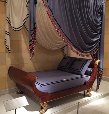One more thought: to the early 19thc customer commissioning this bed, the political and bellicose overtones of its design would have been a selling point. Today's consumers, however, prefer their beds to be a bit less menacing. While this style of classically-inspired bed - without the eagles and inlay - is once again very popular, savvy modern manufacturers call them sleigh beds - conjuring up cozy images of fresh snow, warm blankets, and sleigh bells instead of stern Roman military officers plotting their next conquest.