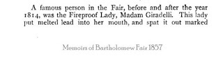 One of the entertainers who intrigued me especially was the Fireproof Lady, but you may have your own favorites.