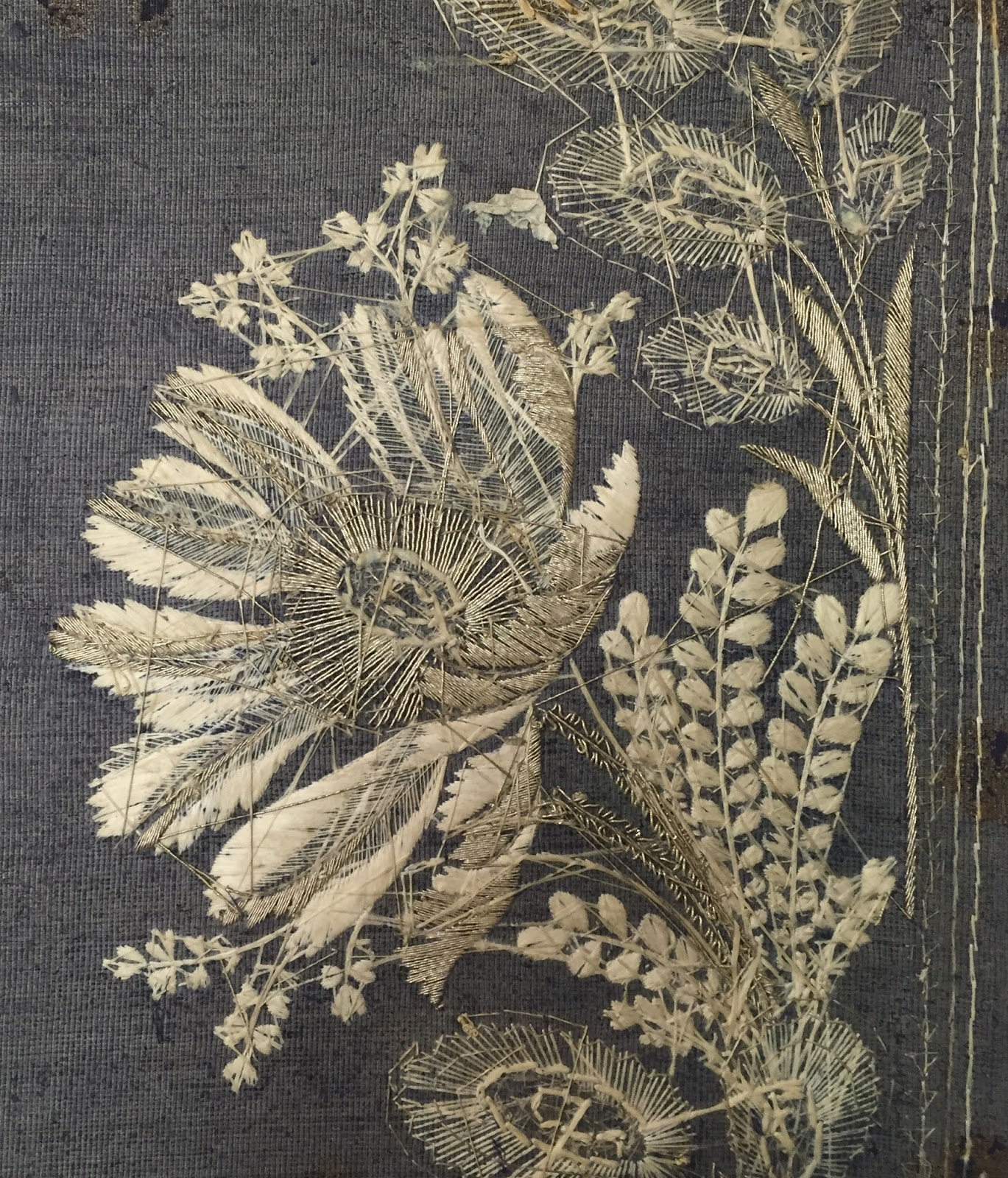 Most of all, seeing this sample in such detail left me in awe of those now-forgotten designers, embroiderers, thread-spinners, sequin-and paste-jewel makers, velvet-weavers, and needle-makers who would have each contributed to its creation, and the skill, artistry, and accomplishment that this small bit of two-hundred-year-old fabric represents.