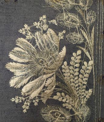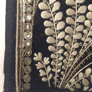 I also loved being able to see the back side of the embroidery. Without the pile of the velvet and the glitter of the sequins and jewels, the design becomes more linear with the transition stitches criss-crossing over the flowers and leaves. In a way, it's equally beautiful, like the finest of silk spiderwebs.