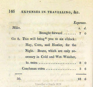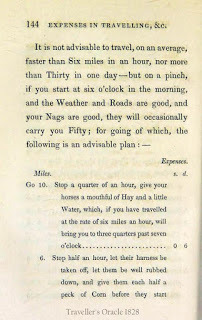 Traveling in the early 1800s was complicated to a degree we can scarcely fathom. The Traveller's Oracle , by William Kitchiner, M.D., deals with what seems to be every last, daunting detail of the process, like what sort of servant(s) to take, what medicines to pack, how to sleep safely at an inn, and so on.
