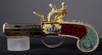 Readers familiar with my short story, “Lord Lovedon’s Duel,” (from the Royally Ever After duet) will remember the Singing Bird Pistols. I’ve shown the pistols in operation in a previous blog . What I didn’t realize was how much restoration work went into making them look like this .