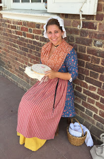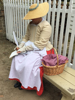 This past weekend I made a quick visit to Colonial Williamsburg, where it was hot, hot, hot, and tropically humid, too - the steamiest of Tidewater Virginia weather. As I walked (no, I'll be honest: I was dragging myself) around the historic area, I was impressed by how the women dressed in the style of c1775 seemed to look much more comfortable with the heat than I was, dressed c2016.