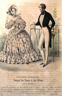 Images from Journal des Dames & des Modes, Costumes Parisiens, 1838. (Not a lot of men's 1830s fashion in any English publication I could find online.)