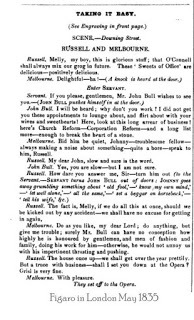Figaro in London was one of several 19th-century publications featuring satire and caricature. Among the famous names in this business were George Cruikshank (whose caricatures have often adorned our blog posts), William Hone, and Leigh Hunt.