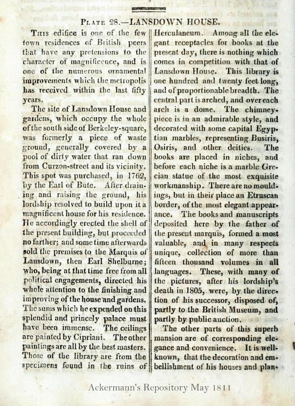 By now everybody’s aware of my fascination with lost architecture. Unlike Northumberland House , Lansdowne House isn’t completely lost. A still-impressive piece of it remains in Berkeley Square, as the home of the Lansdowne Club ,*