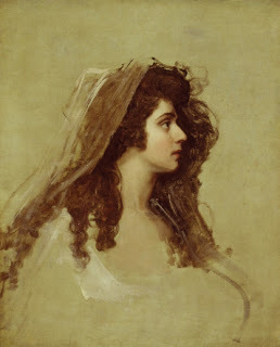 While most successful Georgian actresses were graced with conventional beauty (some things never change), Sarah's appearance was more striking than pretty. She was tall, with flashing dark eyes, a prominent profile, and an intensity that mesmerized audiences. She specialized in playing powerful roles of tragic women, and made Lady Macbeth her own. She fascinated artists as well as playgoers, and she sat for all the major portrait painters of the day - Sir Joshua Reynolds, Thomas Gainsborough, Gilbert Stuart, John Downman, George Romney, and Thomas Lawrence - who all attempted to capture her brilliance.