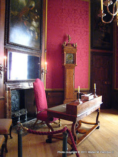 King William III (1650–1702) was not an extrovert. He liked to be alone or with small groups of friends. One of the places where he could have some privacy was what’s called the King’s Closet. Here he’d meet with the privileged few and work at his modest-looking walnut desk. His long-case clock nearby needs to be wound only once a year—highly advanced technology for the time.