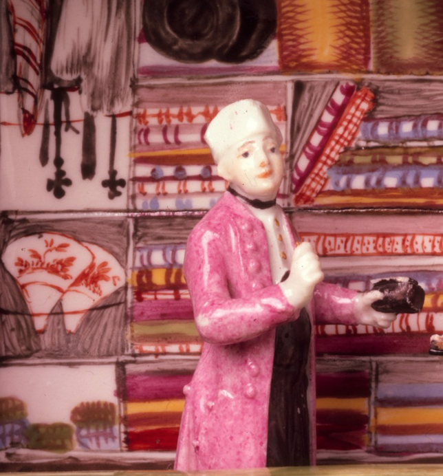 Above: Venetian fair shop with two figures, Ludwigsburg Porcelain Manufactory, 1765, Metropolitan Museum of Art.