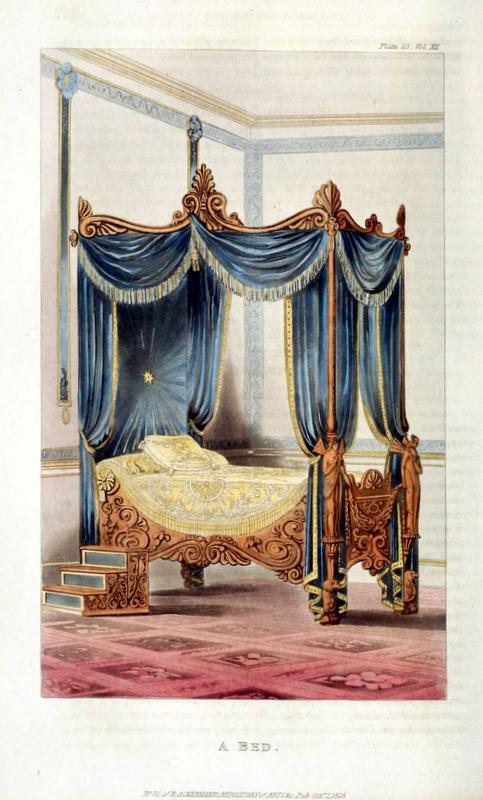 This bed in Ackermann’s Repository for October 1828 was my inspiration.