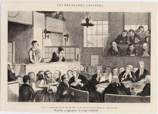 George Cruikshank, “ From the bar of the gin shop to the bar of the Old Bailey it is but one step ,” from The Drunkard’s Children (1848), Courtesy of The Lewis Walpole Library, Yale University.