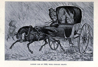 My characters in Dukes Prefer Blondes spend time in hackney coaches and hackney cabs. You will often find the terms used interchangeably, as though they were the same thing. However, a hackney cab was quite a different article from a hackney coach. The cab was a two-wheeled, one-horse vehicle. It held only two passengers, and seemed to be generally regarded as a mode of transportation for those who liked to live dangerously.