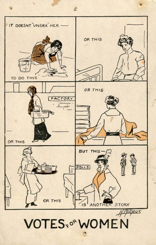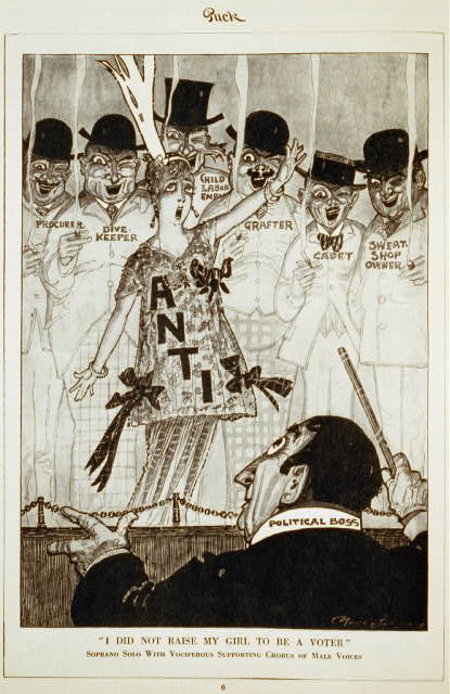 Yet a few years later we find images mocking the anti-suffrage side, here , here , here , here , here , and this powerful (and surprising, given the date) image of native American women .