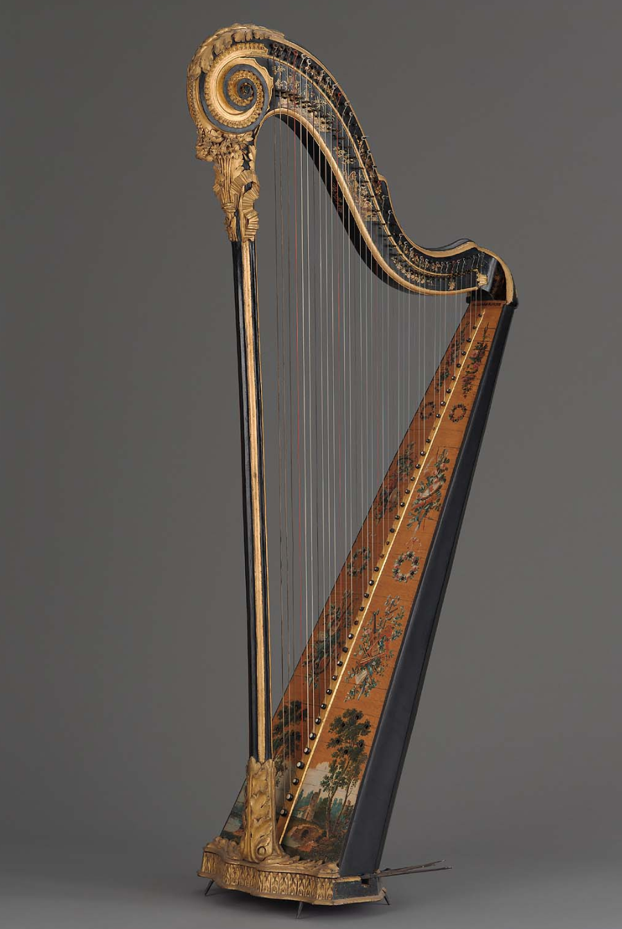 Here's a wonderfully peaceful way to ease into the weekend: harpist Nancy Hurrell plays a short selection on an 18thc French pedal harp in the collection of Museum of Fine Arts, Boston. Made in Paris around 1785 by master luthier and harp-maker Godefroi Holtzman, the harp, right, is an exquisitely beautiful instrument, a work of art even if it didn't make such lovely music. For more information about the harp, please see the museum's page here .
