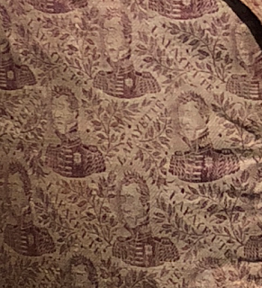 Americans celebrated Lafayette's visit with all kinds of souvenirs. Much like modern Americans wear t-shirts printed with the names and faces of their heroes, Lafayette's portrait was emblazoned on ribbons, dresses, and gloves, as well as the vest shown here: