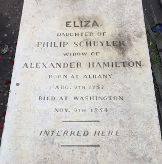 In May, 2017, I visited the churchyard of Trinity Church in Wall Street, where Eliza and Alexander Hamilton are buried side by side. It's become something of a pilgrimage site for fans of Lin-Manuel Miranda's phenomenal musical, and Alexander's ornate tomb in particular is often decked with flowers and other tributes.