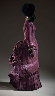 Images: Woman’s 2-piece silk bustle dress, France, c. 1885 , and Bustle and undergarments c 1885, Los Angeles County Museum of Art, Costume and Textiles Department.