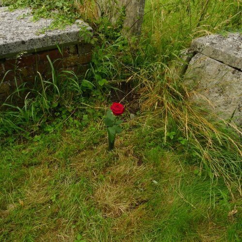 I do have photos from yesterday but I think they may be maudlin. If I decide they aren’t maudlin I’ll think about posting them next 26 July. This one is probably maudlin too but I’m incapable of believing that a photo of a red rose is ever inappropriate**. Something I didn’t tell you yesterday because I was already too deranged is that I threw my wedding bouquet in the bottom of the hole before the box went in.*** My bouquet was the one a-little-bit sad thing about our wedding: we left for London almost immediately after the registrar finished declaring us husband and wife so I only had it about two hours; we’d only picked it up on our way to the registrar’s office. But I knew I wanted to dry it so I could keep it, so I hung it upside-down in the kitchen before we left, and it was toast by the time we got back.† It’s been sitting in a particular china pitcher for the last twenty four and a half years but I knew I wanted to bury it with him.†† Although that empty pitcher is now very eye-catching.