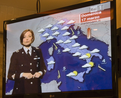 I was rather surprised to see the weather announcer in a rather severe looking uniform.