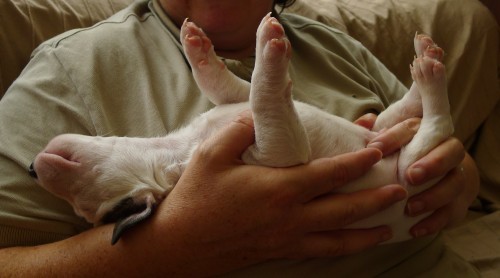I got a Mastiff pup in April, and he’s the best, quietest, most well-behaved puppy I’ve ever had — housebreaking was a cinch, no separation anxiety, etc. — and I STILL was counting the weeks until those sharp puppy teeth fell out, and I’m STILL counting the months until he’s not a wild and crazy play monster and settles down… Yup — it’s all worth it.
